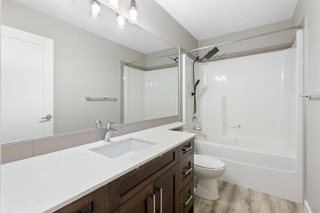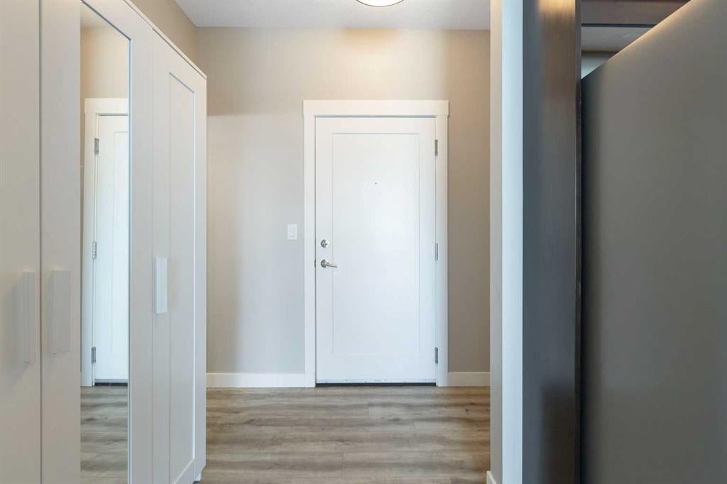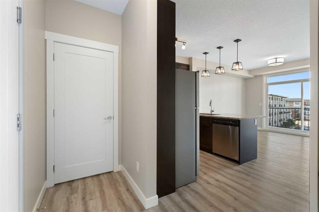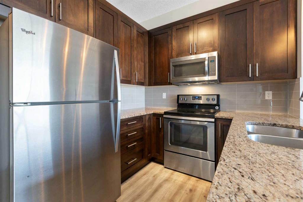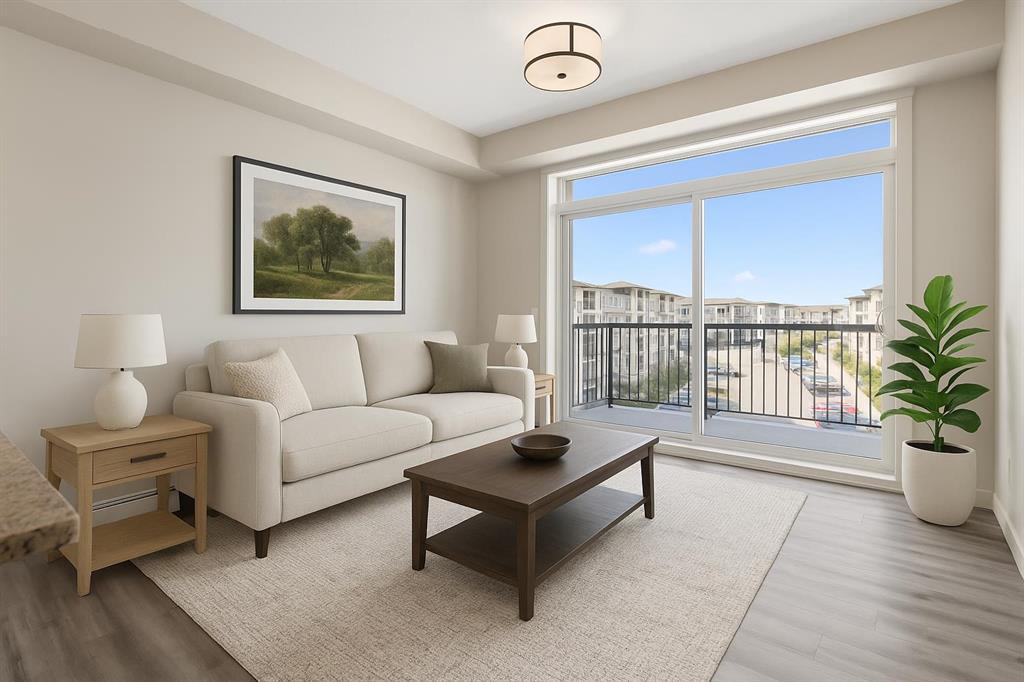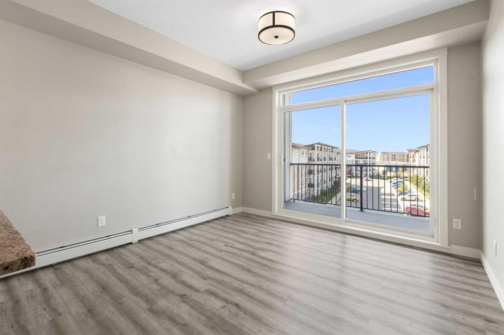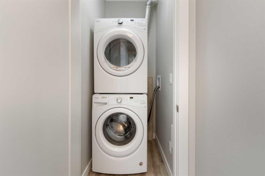 Perched on the top floor with sweeping mountain views, this bright & airy two-bedroom home is the perfect blend of style, comfort, and convenience. Oversized windows and soaring 9-foot ceilings flood the space with natural light, creating an airy, inviting atmosphere that feels instantly like home. The kitchen is a true showstopper—rich maple cabinetry, sleek granite countertops, and a spacious island with seating for three sets the stage for everything from quick morning coffees to lively evenings with friends. Stainless steel appliances keep the look polished and modern, while the open-concept design ensures conversations flow as effortlessly as the layout itself. Both bedrooms are generously sized, with plush carpet underfoot in the sleeping areas and upgraded vinyl plank flooring carrying throughout the main spaces. Everyday ease continues with in-suite laundry, featuring a stackable washer and dryer discreetly tucked away. This unit comes with a window AC unit to keep you cool during the warm summer days. Step outside onto your southwest-facing balcony and exhale—it’s your private retreat with sunshine all afternoon and calming vistas of mountains and green space. Down below, your heated underground parking stall and separate storage unit add peace of mind and year-round comfort. Living here means being part of Walden, a vibrant and growing community where everything is at your doorstep. The plaza across the street offers endless shops and dining experiences. Parks, playgrounds, sports fields, and trails weave through the neighbourhood, while quick access to MacLeod and Stoney Trails makes commuting effortless—and weekend escapes to the Rockies just 45 minutes away. This is more than a condo. It’s a lifestyle, wrapped in mountain views and modern finishes—all with low monthly fees. Don’t wait—this unit is calling your name & it’s ready to welcome you home.