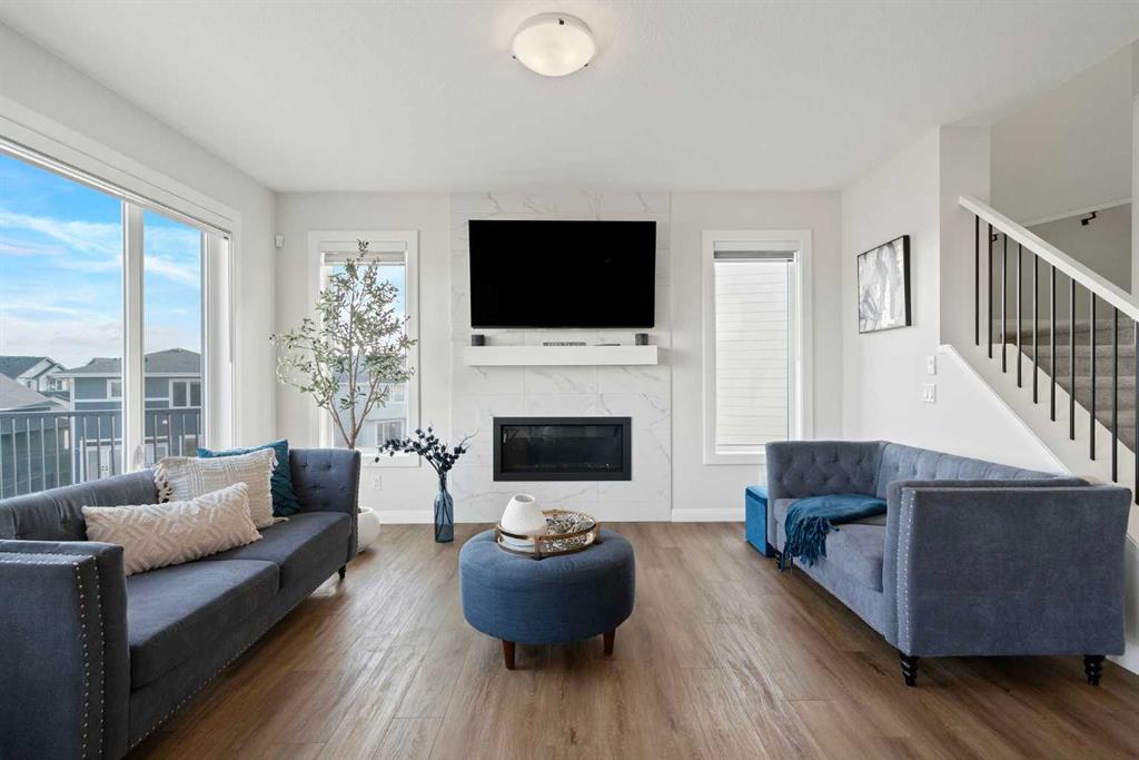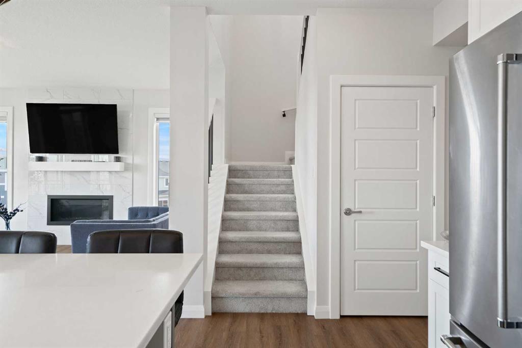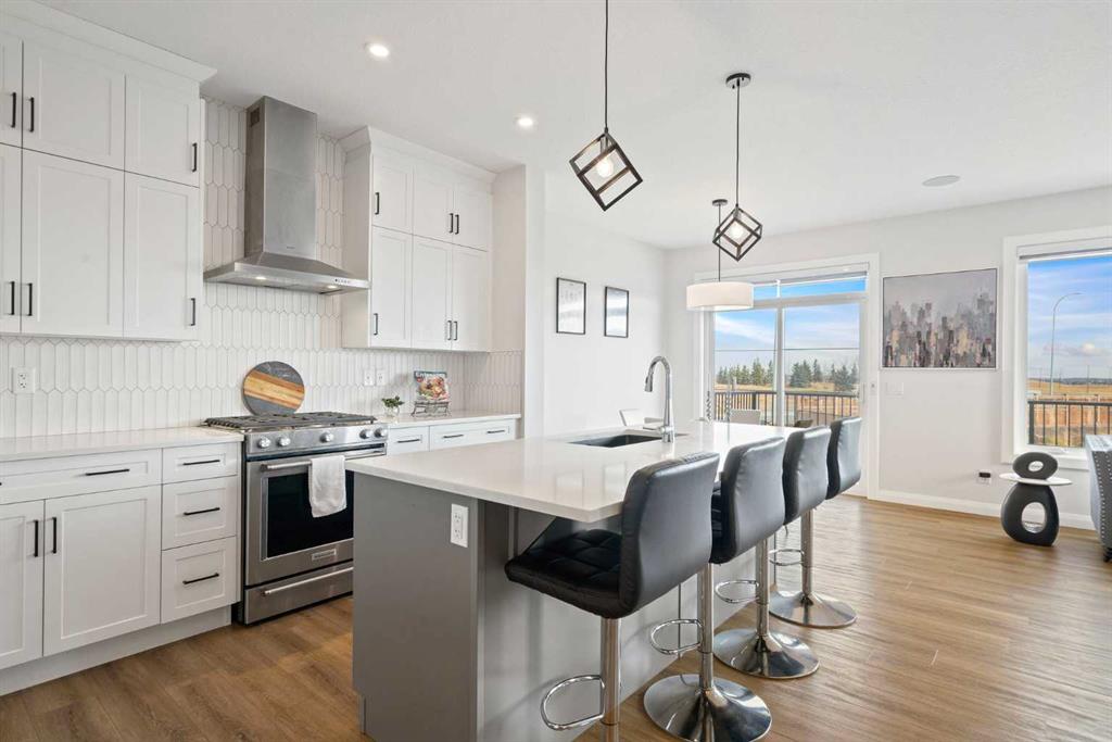 Say “hello!” to this charming Creekstone walkout home. Tucked away on a quiet cul-de-sac, this upgraded single-family home sits on an oversized, pie-shaped lot backing directly onto a greenbelt walking path, with completed landscaping, open views of nature, and even downtown skyline views and Stampede fireworks in the distance. Inside, timeless design meets modern comfort. Wide-plank luxury vinyl flooring grounds the main level, while 9’ ceilings, wrought-iron railings, and large windows create a bright, welcoming flow. The heart of the home is the beautifully curated, highly upgraded kitchen with KitchenAid appliances, including a gas range, chimney hood fan, quartz countertops, tile backsplash, walk-through pantry, and an oversized island perfect for gatherings. The spacious great room centers around a floor-to-ceiling tile fireplace, while built-in speakers throughout the home (controlled via the Sonos app) set the mood for every occasion. A private main-floor office enclosed by double French doors offers a quiet workspace. Step out to the wraparound deck to enjoy peaceful greenbelt views and watch the sun set over your fully landscaped yard, which slopes gently away from the home. Upstairs, a central bonus room anchors the second floor, offering separation and privacy between bedrooms. The primary suite is a serene retreat with automatic blinds, a spa-inspired ensuite featuring dual sinks with tons of counterspace and storage, a tiled walk-in shower, a deep soaker tub, and a generous walk-in closet. Two additional bedrooms (each a great size) are located on the opposite side of the bonus room, along with a stylish 4-piece bath and a dedicated laundry room that’s on every mom’s wishlist! Downstairs, the bright unfinished walkout basement features oversized windows and is roughed in for a future bathroom, ready to be developed into your dream rec area, additional bedrooms, or a legal suite (subject to City approvals). The exterior is wrapped in James Hardie board for lasting durability, and the insulated, drywalled double attached garage adds everyday convenience. Located in Pine Creek, one of Calgary’s most scenic and fast-growing new communities, this home offers quick access to Stoney Trail, Macleod Trail, 210 Ave, Township Plaza, Legacy’s shopping districts, and Spruce Meadows, with future schools planned nearby. With its natural pathways, playground down the street, family-friendly energy, and city conveniences close at hand, this move-in-ready walkout delivers the space, finishes, and lifestyle you’ve been waiting for, without the wait to build. Your next chapter begins here. Book your private viewing today and don't forget to WATCH THE VIDEO!