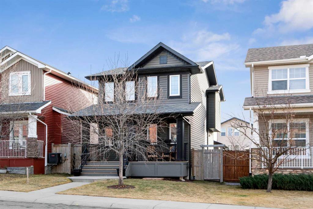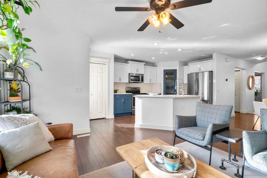 Welcome to 263 Evanston Way NW, ideally located across from a school and green space in one of Evanston’s most family-friendly pockets. This well-maintained home offers over 2,200 sq ft of developed living space across three finished levels, with thoughtful upgrades throughout. The covered front porch leads into a bright foyer, with a private front OFFICE ideal for working from home. Main-floor laundry and a convenient powder room add everyday functionality. The open-concept main living area features a recently updated kitchen with QUARTZ countertops, two-toned cabinetry (white uppers with blue lowers and island), STAINLESS STEEL APPLIANCES, and a generous pantry. The kitchen flows seamlessly into the dining area and rear living room, anchored by a GAS FIREPLACE and large windows overlooking the beautifully landscaped backyard. Outside, enjoy a two-tiered deck with pergola, perfect for entertaining or relaxing, plus the added benefit of a heated detached garage for year-round use. Upstairs, the spacious primary bedroom includes a walk-in closet and a well-appointed ensuite with soaker tub and separate shower. Two additional bedrooms with newer triple-pane windows, a full bathroom, and an open-to-below landing complete the upper level. The FULLY DEVELOPED BASEMENT offers a large rec room with WET BAR, a fourth bedroom, and a full bathroom - ideal for guests, teens, or extended family. This level also includes an organized utility space, ample storage, and a BRAND NEW HOT WATER TANK. Recent updates include new siding, new roof shingles, updated kitchen finishes, and CENTRAL AIR CONDITIONING, offering move-in-ready peace of mind. Located in the heart of Evanston, this home provides easy access to schools, parks, pathways, shopping, and major commuter routes. A well-rounded property offering plenty of space, functionality, and a strong community setting. Book your private showing today!